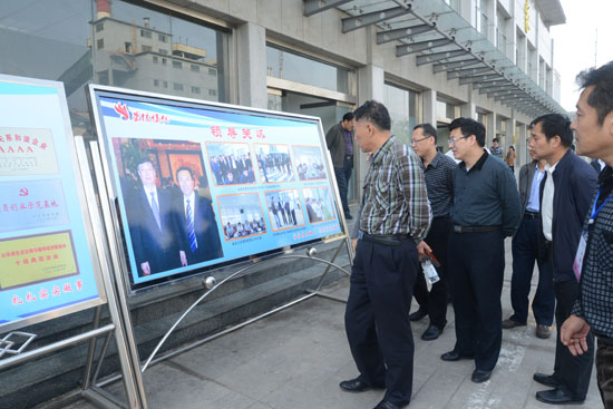 與會人員在職工之家前觀看企業(yè)圖片展