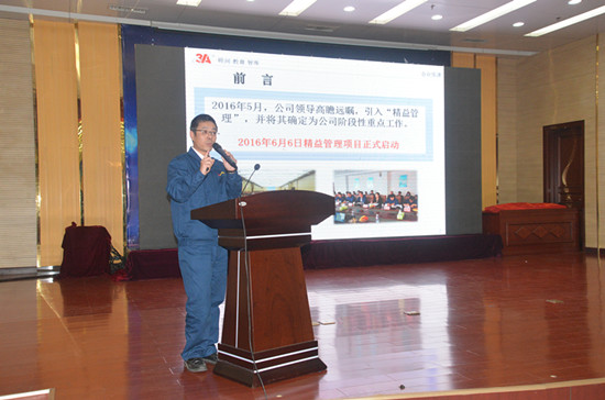 會(huì)議在精彩紛呈的節(jié)目演出中拉開序幕。《精益十原則》朗誦、小品《新聞播報(bào)》、啞劇《精益管理就是好》、歌曲《你行我也行》、情景劇《6S推行記》通過不同的表現(xiàn)形式淋漓盡致地展現(xiàn)了公司推行近5個(gè)月的6S精益管理工作,精彩的表演贏得了與會(huì)領(lǐng)導(dǎo)和參會(huì)人員的陣陣掌聲。隨后,3A公司副總經(jīng)理唐勇系統(tǒng)總結(jié)了6S精益管理階段工作,3A公司總裁肖智軍生動(dòng)詮釋了推行精益管理的內(nèi)涵和重要意義,濟(jì)寧市安監(jiān)局局長(zhǎng)玄志祥對(duì)公司推行的精益管理工作給予了高度評(píng)價(jià)。