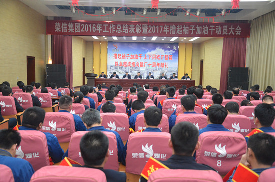 總經理司相芳在會議上發(fā)表了以“擼起袖子加油干,上下同欲開新篇,以卓越成績向建廠十周年獻禮”為主題的重要講話。司總指出,2016年,取得的成績遠遠超過預期,大事多,難事多,喜事也多。過去的一年,我們經歷了前所未有的嚴峻考驗,是市場形勢最為復雜的一年,也是大踏步轉型升級的一年,更是承受內與外壓抑磨煉的一年。陽光總在風雨后,風雨過后有彩虹。全年主要經濟指標持續(xù)向好,仍保持同行業(yè)最好水平。以榮信煤化為核心,以恒信科技、奔月新能源和恒信航運為成員的山東榮信集團成立。碼頭投用見效,多元化經營效益新增。轉型升級成效凸顯,產業(yè)鏈條延伸,產品檔次提升。與魯南煤化工研究院簽署戰(zhàn)略合作協(xié)議,科技創(chuàng)新平臺得以拓展。新獲得第五屆濟寧市市長質量獎、“富民興魯勞動獎”、“濟寧市十佳智能制造示范企業(yè)”、“山東煤化工行業(yè)十強企業(yè)”等榮譽?!叭似?、產品、企品”三品合一的榮信品牌效應凸顯,黨委政府、股東單位、社會各界、廣大客戶、合作伙伴對榮信賦予了新的期待。成績的取得,也離不開黨委政府、股東單位及沈主席、龔總裁的正確領導,歸功于全體干部員工的拼搏奮斗,也傾注著員工家屬、廣大客戶、合作伙伴和社會各界的關心支持。