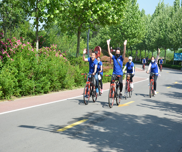 本次參與騎行活動的人員統(tǒng)一穿著印有集團公司LOGO的Polo衫,騎行的單車采用榮信建廠十周年統(tǒng)一發(fā)放的自行車,騎行路線主要是沿太白湖環(huán)湖騎行一周,路程約13km。為確?;顒禹樌M行,公司在騎行沿途設(shè)置了補水站點,并安排若干后勤保障人員提供補給服務(wù)。