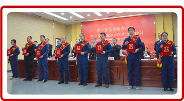 在奮進的樂曲聲中,集團領導先后為先進單位和先進個人代表頒獎。