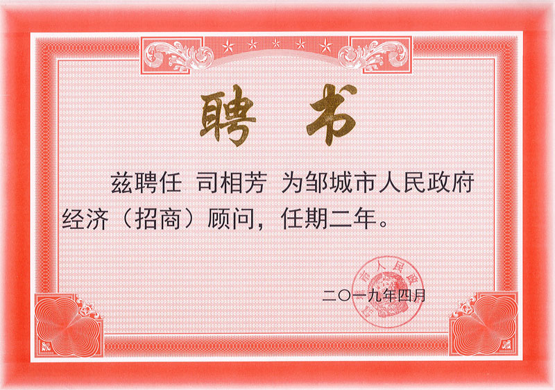 4月24日上午,鄒城市民營(yíng)經(jīng)濟(jì)發(fā)展大會(huì)召開(kāi)。山東榮信集團(tuán)司相芳總經(jīng)理被聘請(qǐng)為鄒城市人民政府經(jīng)濟(jì)(招商)顧問(wèn),并作表態(tài)發(fā)言。
