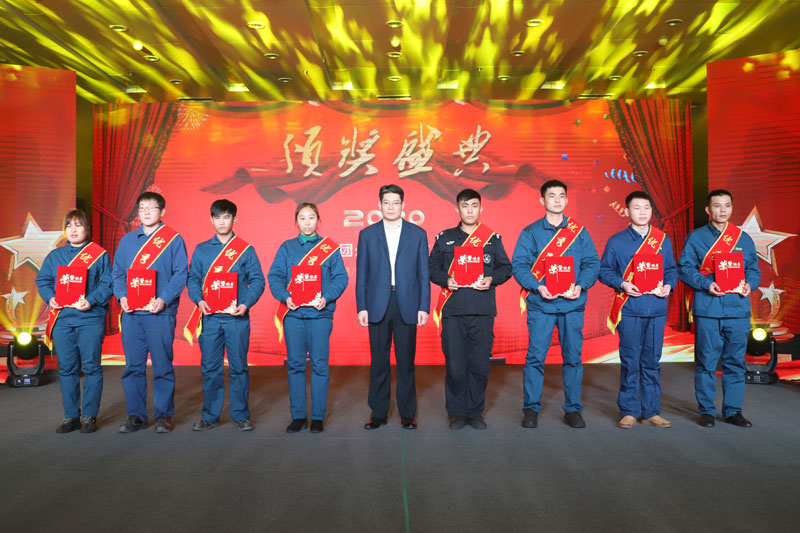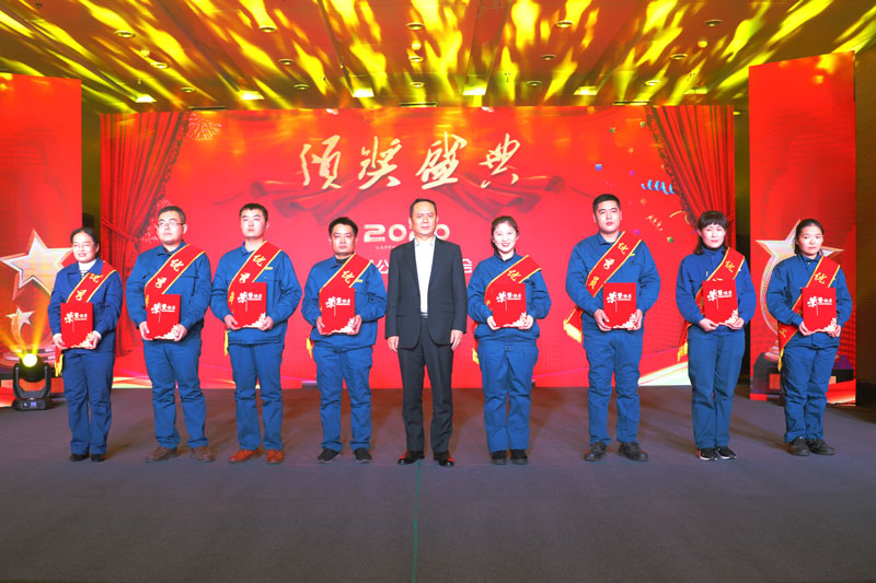 晚會(huì)在熱情洋溢的《盛世歡歌》開(kāi)場(chǎng)舞中拉開(kāi)帷幕。期間,恒信集團(tuán)董事長(zhǎng)、榮信集團(tuán)總經(jīng)理司相芳等在家集團(tuán)公司領(lǐng)導(dǎo),分別向在2019年度為集團(tuán)做出優(yōu)異成績(jī)和突出貢獻(xiàn)的先進(jìn)集體、優(yōu)秀管理干部,先進(jìn)班組,優(yōu)秀班組長(zhǎng),優(yōu)秀員工,優(yōu)秀黨員、營(yíng)銷精英、技術(shù)標(biāo)兵、金牌師傅、改善之星、安全之星、宣傳之星、融入之星等獲獎(jiǎng)單位和人員代表頒發(fā)獎(jiǎng)牌或證書,以此鼓勵(lì)大家只爭(zhēng)朝夕,不負(fù)韶華,以“今天再晚也是早,明天再早也是晚”的緊迫感,拉高標(biāo)桿勇?tīng)?zhēng)先,擼起袖子加油干,當(dāng)好集團(tuán)發(fā)展“頂梁柱”。